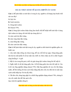 Câu 3. Đ phát hi n tinh b t trong lá cây, ng i ta ti n hành thí nghi m g m cácể ệ ộ ườ ế ệ ồ