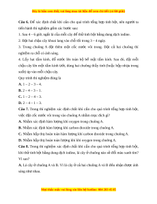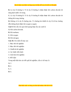 Câu 7. Trong thí nghi m ệ xác đ nh ị ch t ấ khí c n ầ cho quá trình t ng ổ h p ợ tinh b t ộ , việc đ t ặ cốc nư c vôi ớ trong vào chuông A nh m ằ m c đí ụ ch gì? A. Nh m
