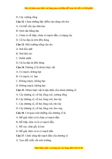 Đây là bản xem th , vu ử i lòng mua tài li u ệ đ xe ể m chi ti t ế (có l i ờ gi i ả ) D. Cây xư ng ơ rồng Câu 12. Ch n nh ọ ng ữ đ c đi ặ m ể nào đúng v i ớ rêu: A. C t ơ hể c u t ấ o ạ đ n bào ơ B. Sinh s n b ả ng ằ h t ạ C. Chưa có r t ễ h t ậ , ch a ư có m ch ạ d n, có d ẫ ng ạ cây