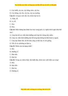 D. Cả ba đáp án trên đ u đúng ề Câu 21. Đ i ạ di n c ệ a ủ nhóm H t ạ kín là: A. Dư ng x ơ ỉ B. Cây v n t ạ uế C. Rêu tư ng ờ D. Cây xư ng ơ rồng Câu 22. Trong nh ng