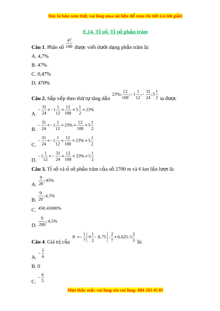 Đây là bản xem th , vu ử i lòng mua tài li u ệ đ xe ể m chi ti t ế (có l i ờ gi i ả ) E .14. T s ỉ . ố T s ỉ ph ố ần trăm 47