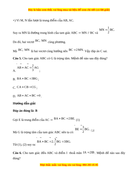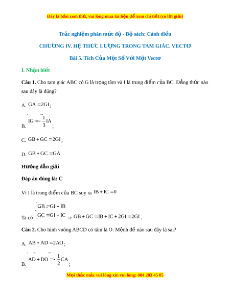 Câu 1. Cho tam giác ABC có G là tr ng tâm và I là trung đi m c a BC. Đ ng th c nàoọ ể ủ ẳ ứ