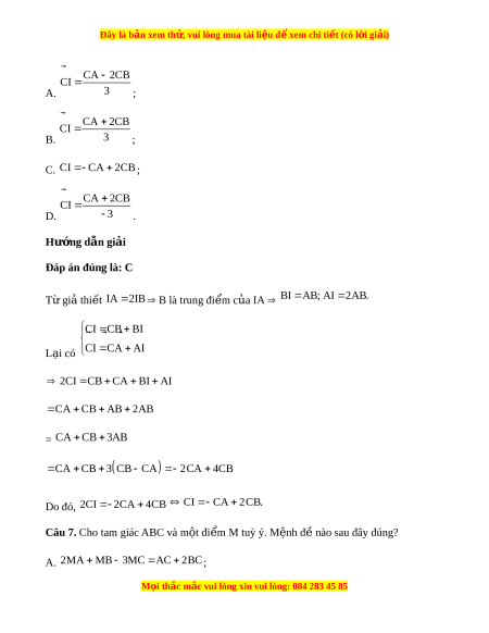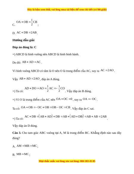 Đây là bản xem th , vu ử i lòng mua tài li u ệ đ xe ể m chi ti t (c ế ó l i ờ gi i ả ) 1 OA OB CB C. 2 ; D. AC DB 2 AB . Hư ng d ớ ẫn gi i ả Đáp án đúng là: C
