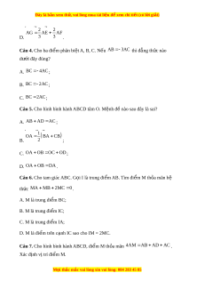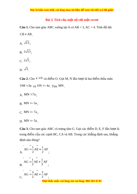 Đây là bản xem th , vu ử i lòng mua tài li u ệ đ xe ể m chi ti t (c ế ó l i ờ gi i ả ) 2 2 AG AE AF D. 3 3 . Câu 4. Cho ba đi m ể phân bi t ệ A, B, C. N u ế AB 3AC thì đ ng ẳ th c nào ứ dư i ớ đây đúng? A. BC 4AC ; B. BC 2AC ; C. BC 2 AC ;