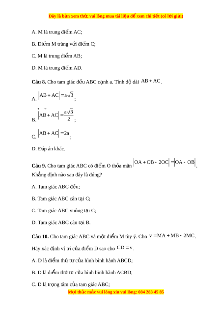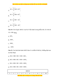 Câu 10. Cho tam giác ABC và m t đi m M tùy ý. Cho ộ ể