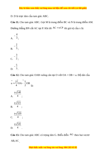 Đây là bản xem th , vu ử i lòng mua tài li u ệ đ xe ể m chi ti t (c ế ó l i ờ gi i ả ) D. D là tr c t ự âm c a ủ tam giác ABC.