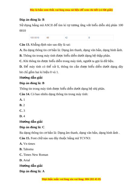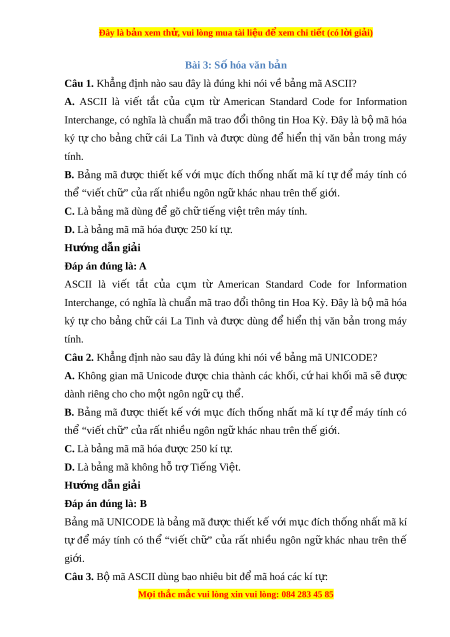 Đây là bản xem th , vu ử i lòng mua tài li u ệ đ xe ể m chi ti t ế (có l i ờ gi i ả ) Bài 3: S hóa văn b ô n ả Câu 1. Kh ng đ ă