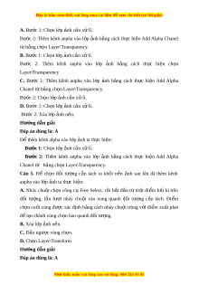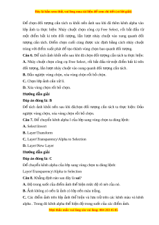 C. Layer\Transparency\Alpha to Selection D. Layer\New Layer Hư ng ơ d n gi ẫ i ả Đap an đúng là: C Đ chuy ê n kênh ê alpha c a l u p s ơ ang vung ch n o ta dung l nh: ê