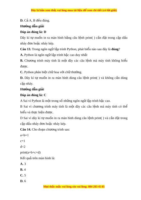 Đây là bản xem th , vu ử i lòng mua tài li u ệ đ xe ể m chi ti t (c ế ó l i ờ gi i ả ) print(‘xin chao’) Day ki t m ư u n i ô n ph i a đ t ê rong c p ă d u nhay đ â n ho ơ c ă nhay kep. Câu 4. Kh ng ă đ nh nào s i