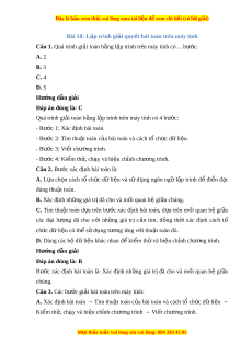 ậ trình trên máy tính có …bư c: ớ A. 2 B. 3 C. 4 D. 5 Hư ng ớ d n gi ẫ i ả Đáp án đúng là: C Quá trình gi i ả toán b ng l ằ p