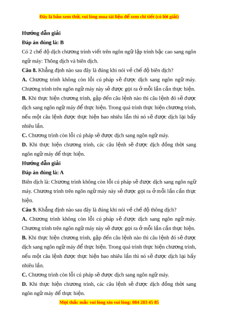 Đây là bản xem th , vu ử i lòng mua tài li u ệ đ xe ể m chi ti t (c ế ó l i ờ gi i ả ) Hư ng d ớ ẫn gi i ả Đáp án đúng là: B Có 2 ch ê đ ô d ch i chư ng ơ trình vi t ê trên ngôn ng ư l p ậ trình b c ậ cao sang ngôn ng m ư áy: Thông d ch va b i iên d ch. i Câu 8. Kh ng ă đ nh nao s i