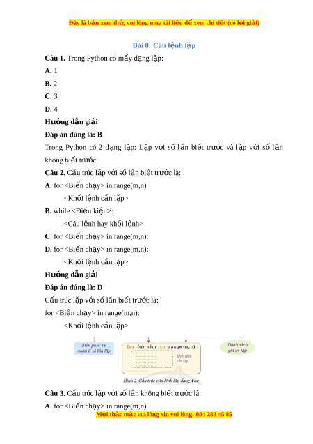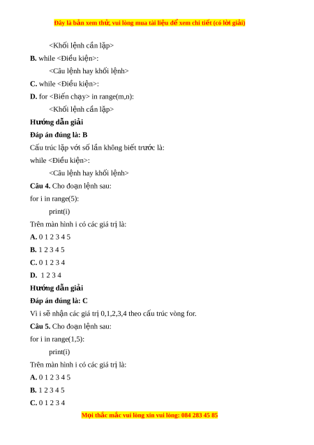 Đây là bản xem th , vu ử i lòng mua tài li u ệ đ xe ể m chi ti t (c ế ó l i ờ gi i ả ) ê n l â p> ặ B. while <Đi u ki ê n>: ê ê i ô l nh> ê C. while <Đi u ki ê n>: ê D. for ê ch y> i ạ n range(m,n): ê n l â p> ặ Hư ng d ớ ẫn gi i ả