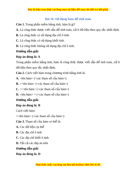 Đây là bản xem th , vu ử i lòng mua tài li u ệ đ xe ể m chi ti t (c ế ó l i ờ gi i ả ) Bài 10. S d ử ng h ụ àm đ t ể ính toán