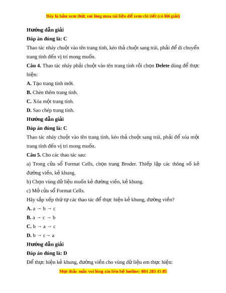 Đây là bản xem th , vu ử i lòng mua tài li u ệ đ xe ể m chi ti t (c ế ó l i ờ gi i ả ) Hư ng d ớ ẫn gi i ả Đáp án đúng là: C Thao tác nháy chu t