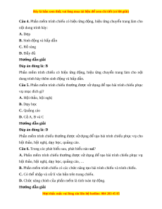 dung trình bày thêm sinh đ ng ộ và h p d ấ n. ẫ Câu 5. Ph n ầ m m ề trình chi u ế thư ng ờ đư c ợ s ử d ng ụ đ ể t o ạ bài trình chi u ế ph c ụ v m ụ c ụ đích gì? A. H i ộ th o, ả h i ộ nghị B. D y h ạ c ọ C. Qu ng ả cáo D. C ả A, B và C Hư ng d ớ ẫn gi i ả Đáp án đúng là: D Ph n ầ m m ề trình chi u ế thư ng ờ đư c ợ s d ử ng ụ đ t ể o ạ bài trình chi u ế ph c ụ v cho ụ h i ộ th o, ả h i ộ ngh , d ị y h ạ c, ọ qu ng cáo. ả