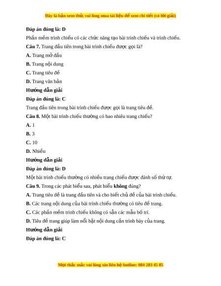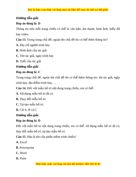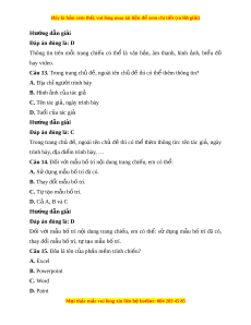 Đây là bản xem th , vu ử i lòng mua tài li u ệ đ xe ể m chi ti t (c ế ó l i ờ gi i ả ) Đáp án đúng là: D Ph n m ầ m ề trình chi u ế có các ch c ứ năng t o bài ạ trình chi u và t ế rình chi u. ế