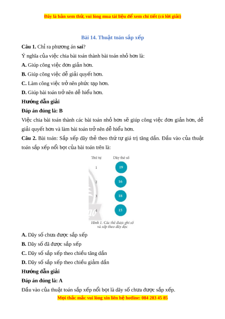 Đây là bản xem th , vu ử i lòng mua tài li u ệ đ xe ể m chi ti t ế (có l i ờ gi i ả ) Bài 14. Thu t ậ toán s p ắ x p ế