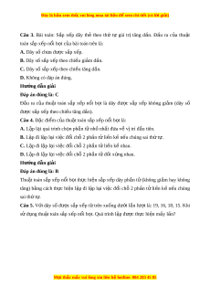 B. Dãy số đã đư c ợ s p ắ x p ế C. Dãy số s p ắ x p t ế heo chi u t ề ăng d n ầ D. Dãy số s p ắ x p t ế heo chi u gi ề m ả d n ầ Hư ng d ớ ẫn gi i ả Đáp án đúng là: A Đầu vào c a ủ thu t ậ toán s p x ắ p n ế ổi b t ọ là dãy số ch a đ ư ư c ợ s p ắ x p. ế M i ọ thắc m c