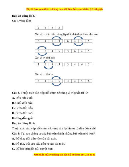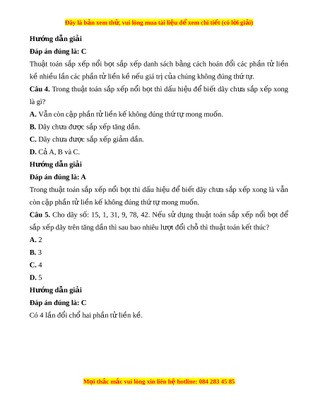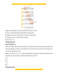 Đây là bản xem th , vu ử i lòng mua tài li u ệ đ xe ể m chi ti t ế (có l i ờ gi i ả ) Câu 6. Trong thu t ậ toán s p ắ x p n ế ổi b t ọ k t ế thúc khi nào? A. Khi các ph n t ầ đã n ử m ằ đúng th t ứ m ự ong mu n. ố