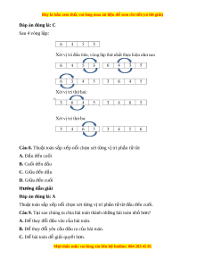 Đây là bản xem th , vu ử i lòng mua tài li u ệ đ xe ể m chi ti t ế (có l i ờ gi i ả ) Đáp án đúng là: C Sau 4 vòng l p: ặ Câu 8. Thu t ậ toán s p ắ x p n ế i ổ ch n xét ọ t ng v ừ t ị rí ph n t ầ t ử : ừ A. Đầu đ n cu ế ối B. Cuối đ n đ ế u ầ C. Gi a ữ đ n đ ế u ầ D. Gi a ữ đ n cu ế i ố Hư ng d ớ ẫn gi i ả Đáp án đúng là: A Thu t ậ toán s p ắ x p n ế i ổ ch n xét ọ t ng v ừ t ị rí ph n t ầ t ử đ ừ u đ ầ n ế cu i ố . Câu 9. T i
