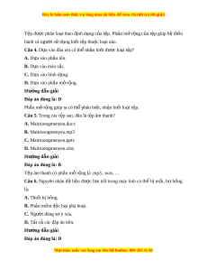 Đáp án đúng là: A Tệp chư ng ơ trình cũng có nhi u ề lo i ạ và đư c ợ phân bi t ệ b i ở ph n ầ mở r ng ộ nh : ư .exe, .com, .msi, .bat Câu 3. Vai trò c a ph ủ n m ầ r ở ng c ộ a ủ t p l ệ à gì? A. Đi u khi ề n ể ho t ạ đ ng c ộ a ủ ph n c ầ ng. ứ B. Giúp h đi ệ u hành và ng ề ư i ờ s d ử ng bi ụ t ế tệp thu c l ộ o i ạ nào. C. Qu n ả lý tài kho n ng ả ư i ờ dùng. D. Để sao l u d ư l ữ i u. ệ Hư ng d ớ ẫn gi i ả Đáp án đúng là: B M i