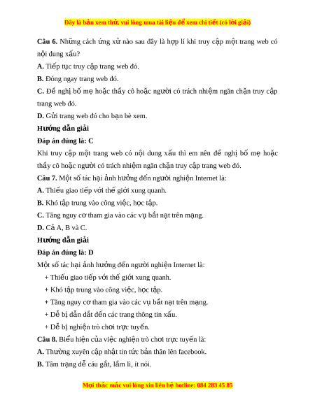 ử trang web đó cho b n bè xem ạ . Hư ng d ớ ẫn gi i ả Đáp án đúng là: C Khi truy c p ậ m t ộ trang web có n i ộ dung x u
