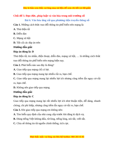 Đây là bản xem th , vu ử i lòng mua tài li u ệ đ xe ể m chi ti t (c ế ó l i ờ gi i ả ) Chủ đ 3. Đ ề ạo đức, pháp lu t