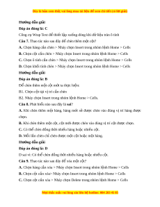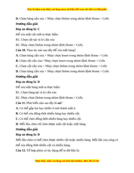 Đây là bản xem th , vu ử i lòng mua tài li u ệ đ xe ể m chi ti t (c ế ó l i ờ gi i ả ) D. Ch n ọ hàng c n xóa > N ầ háy ch n ọ Delete trong nhóm l nh H ệ ome > Cells Hư ng d ớ ẫn gi i ả Đáp án đúng là: C Để xóa m t ộ c t ộ m i ớ ta th c ự hi n: ệ B1. Ch n c ọ t ộ t i ạ v t ị rí c n xóa ầ B2. Nháy ch n D ọ elete trong nhóm l nh H ệ ome > Cells.
