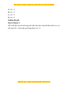 D. Mỗi lần chèn chỉ chèn đư c m ợ t ộ c t ộ ho c m ặ t ộ hàng. Hư ng d ớ ẫn gi i ả Đáp án đúng là: D Mỗi l n chèn ầ có thể chèn đư c ợ nhi u ề c t ộ ho c ặ nhi u hàng. ề M i ỗ l n ầ xóa cũng có th xóa ể đồng th i ờ nhi u c ề t ộ và nhi u hàng. ề Câu 12. Tổ h p phí ợ m có tác d ng ụ đ i ể n d l ữ i u l ệ à: M i