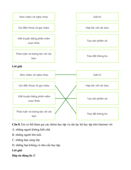 Câu 8. Em có thể tham gia các nhóm học tập và câu lạc bộ học tập trên Internet với