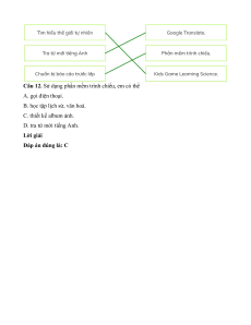 Câu 5. Phần mềm nào sau đây có thể giúp em dịch nghĩa từ mới tiếng Anh? A. Scratch . B. Google Translate . C. Microsoft Word . D. Zoom . Lời giải Đáp án đúng là: B