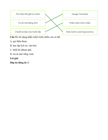 Câu 11. Em hãy ghép nối các hoạt động với phần mềm phù hợp. Lời giải