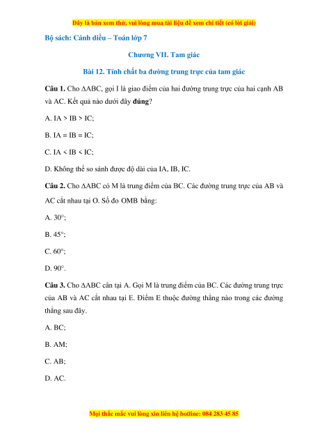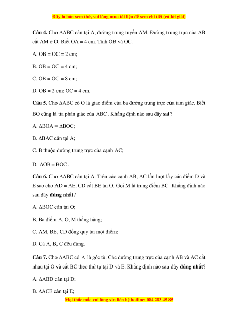 Câu 3. Cho ∆ABC cân tại A. Gọi M là trung điểm của BC. Các đường trung trực