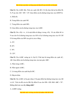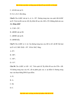 Câu 9. Cho ∆ABC có A tù. Các đường trung trực của AB và AC cắt BC lần lượt