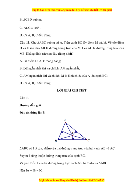 Câu 1. Cho ∆ABC, gọi I là giao điểm của hai đường trung trực của hai cạnh AB