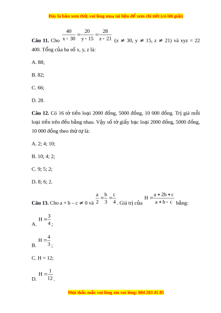 Đây là bản xem th , vu ử i lòng mua tài li u ệ đ xe ể m chi ti t ế (có l i ờ gi i ả ) 40 20 28 Câu 11. Cho x 30 y 15