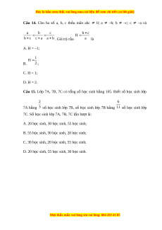 Câu 14. Cho ba s a, b, c th a mãn abc ố ỏ ≠ 0; a ≠ –b; b ≠ –c; c ≠ –a và