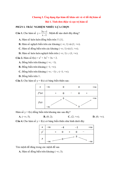 Chương I. Ứng dụng đạo hàm để khảo sát và vẽ đồ thị hàm số