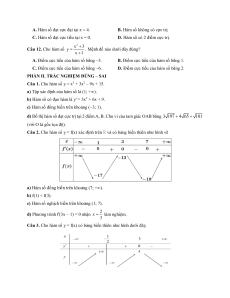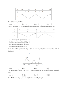 Câu 10. Cho hàm số y = x3 – 3x2 – 9x + 1. Tổng các giá trị cực đại và cực tiểu của đồ thị hàm số bằng A. −6. B. −26. C. −20. D. 20. Câu 11. Cho hàm số 2