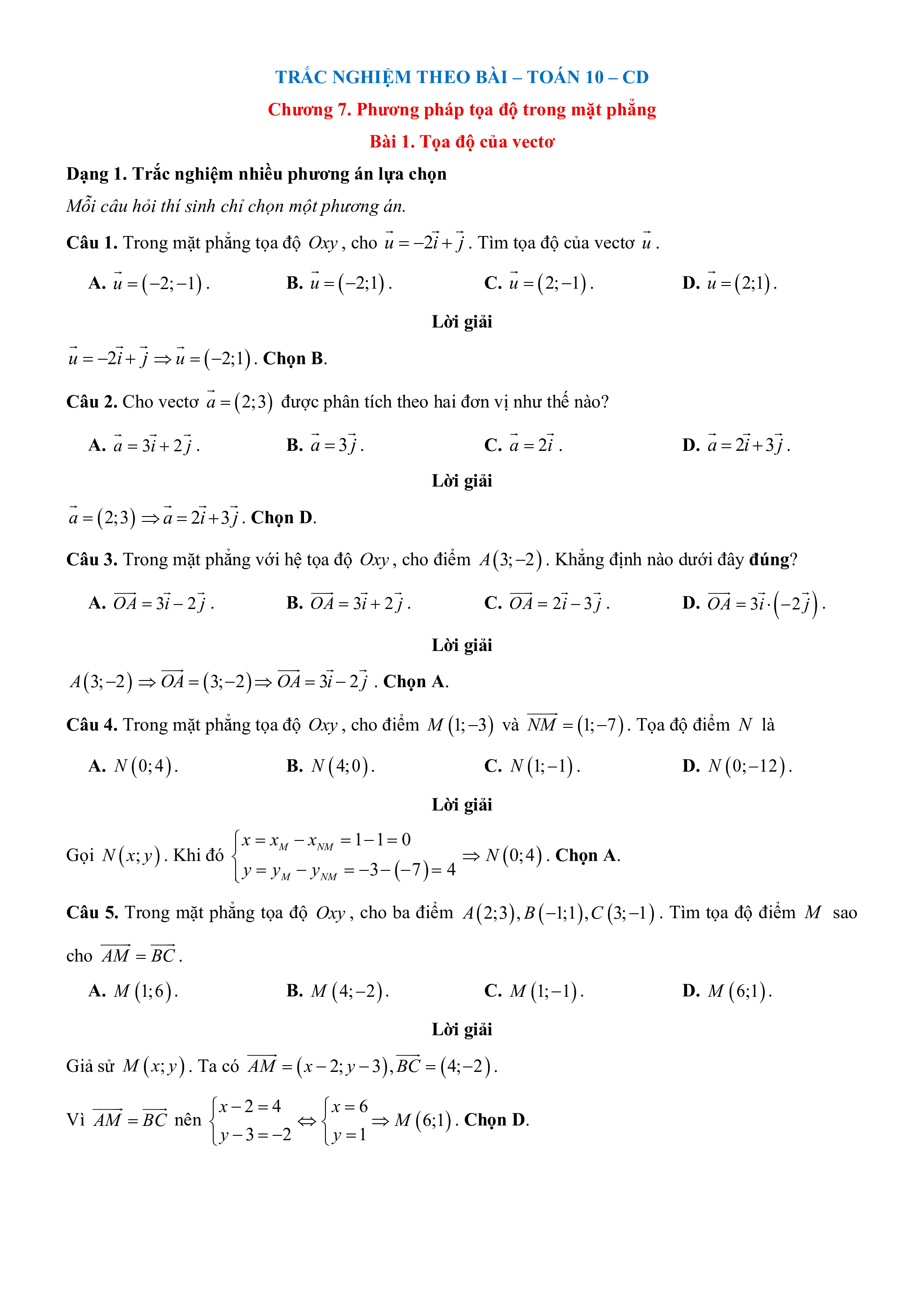 Bài 1. Tọa độ của vectơ