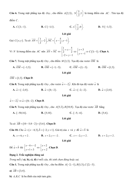 Câu 6. Trong mặt phẳng tọa độ Oxy , cho điểm A2;3 , 5 N ;1