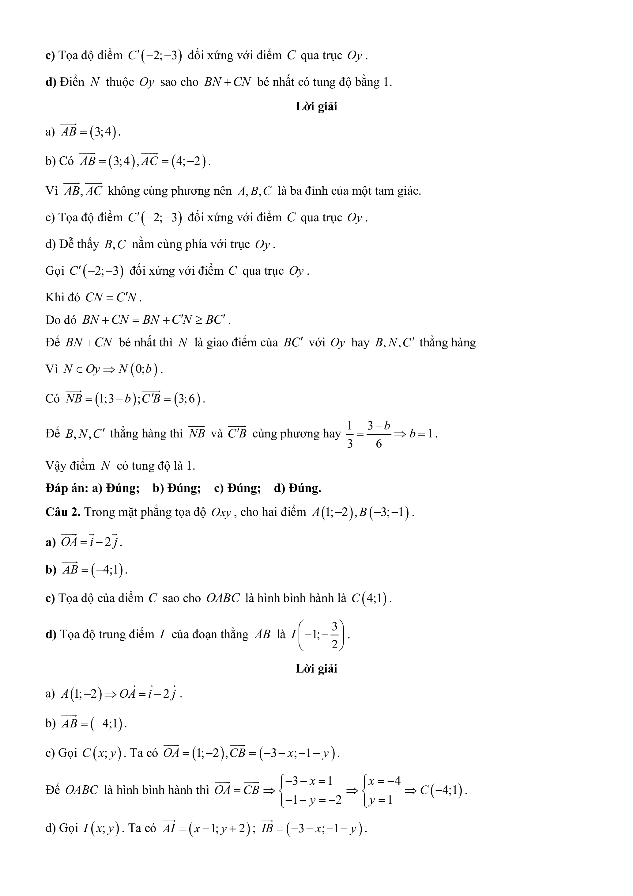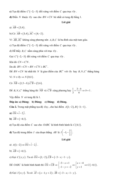 d) Điển N thuộc Oy sao cho BN CN bé nhất có tung độ bằng 1. Lời giải a) AB 3;4.
