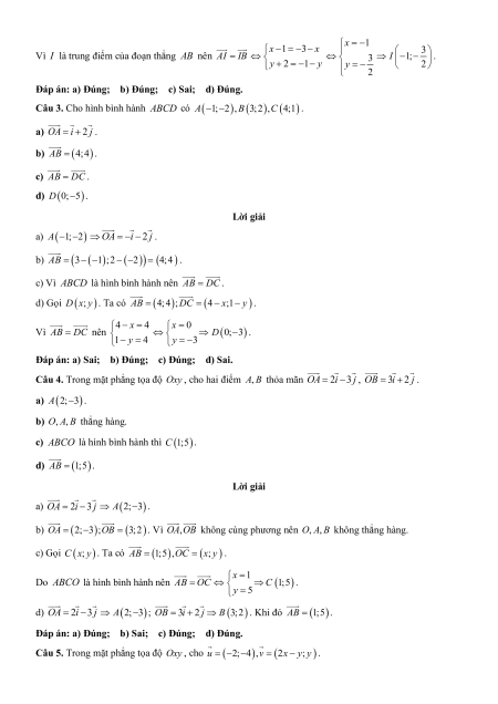 d) Tọa độ trung điểm I của đoạn thẳng AB là 3 I 1; . 2 Lời giải a) A1; 2