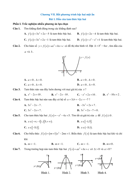 f x ax bx c có Δ 0 và a 0 ? A. Hình 3. B. Hình 4. C. Hình 1. D. Hình 2. Câu 8.