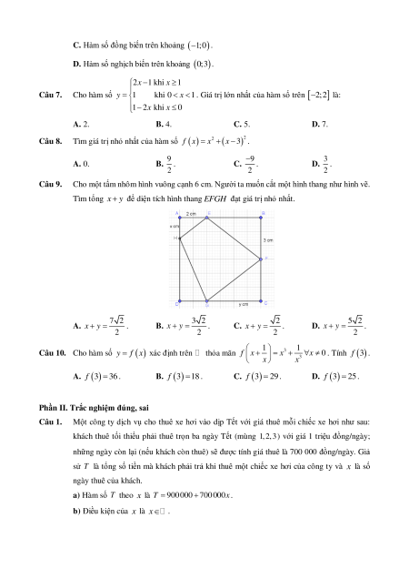 Phần I. Trắc nghiệm nhiều phương án lựa chọn x 3 Câu 1.