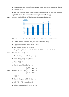 Câu 1. Một công ty dịch vụ cho thuê xe hơi vào dịp Tết với giá thuê mỗi chiếc xe hơi như sau: