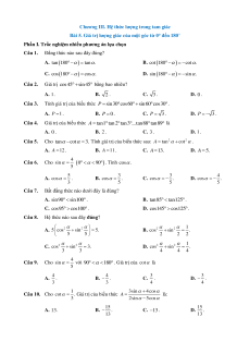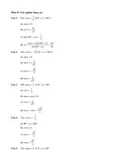 Câu 2. Cho cot 2,0 180 . a) sin 0. 1 b) sin . 3 6 c) cos . 3 1 d) tan . 2 Câu 3.