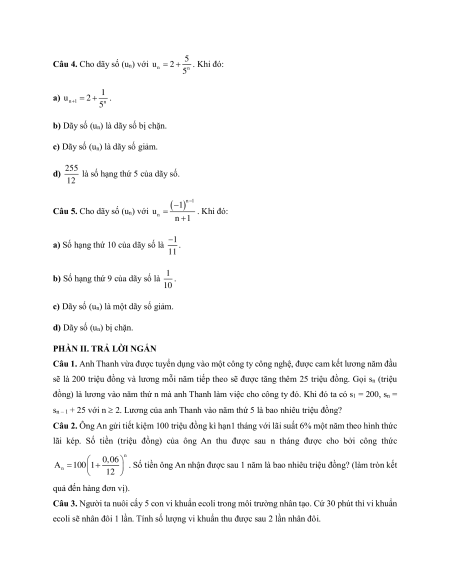 Câu 4. Cho dãy (un) xác định bởi u