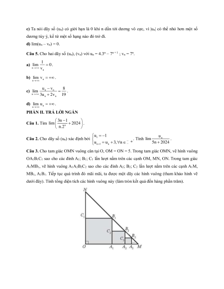 PHẦN II. TRẢ LỜI NGẮN 3n 1 Câu 1. Tìm lim 2024 . n n.2 u 1