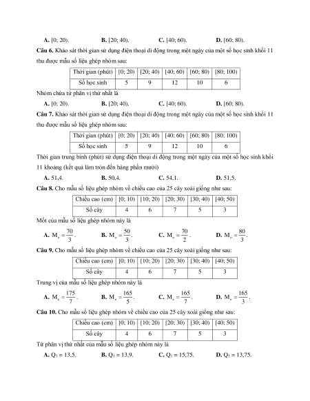 Câu 6. Khảo sát thời gian sử dụng điện thoại di động trong một ngày của một số học sinh khối 11